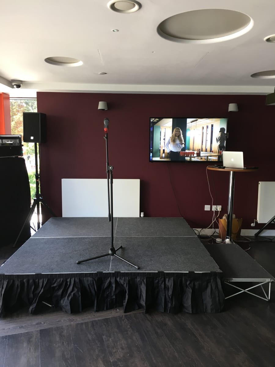 Strong & Sturdy Modular 1m x 1m Staging Pieces. Up to 16 available, this fantastic staging locks together to form any size and shape you require! Ideal for Conferences, Award Shows, Presentations, Live Performance, Catwalks & much more... Guaranteed to stand up and out from the rest! Supplied with Valances, Steps and finished with a sleek, stylish grey carpet. This professional staging will give the formal look your event needs! Each Piece is 1m x 1m. Our most commonly requested setup is 6m x 2m. When we say Strong & Sturdy, we mean it! Capable of supporting an actual car, you can rest assured this staging will be more secure than a bank! Price is £50 Per Piece. Please Contact Us if you would like to discuss Staging Solutions & request a potential site visit!