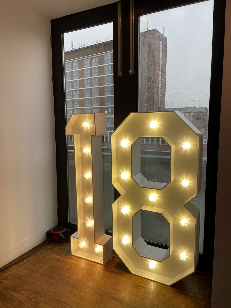 What better way to make a proud display to celebrate every child's (oops... Adult's!) momentous milestone? Our #18 LED Numbers standing in at 5ft tall, will make a wonderful addition to that one-to-remember party! Using LED bulbs & regular PAT testing, you will benefit from safe, highly efficient, low-energy power consumption. Whilst providing a powerful yet soft white light, which will brighten up the corner of a room with great effect.