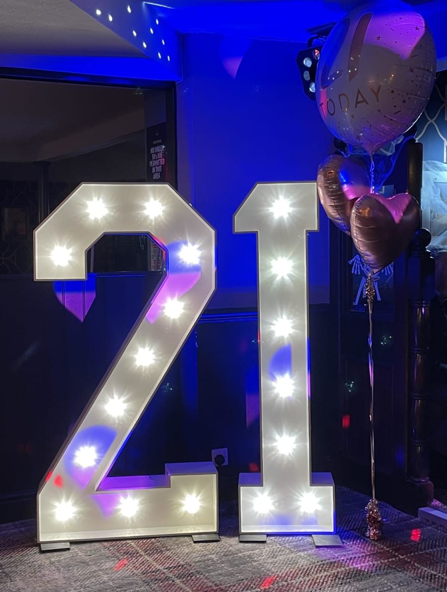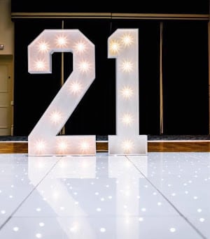 These professionally made numbers look fantastic, provide great room decor and are a brilliant photo prop to complement your event space!