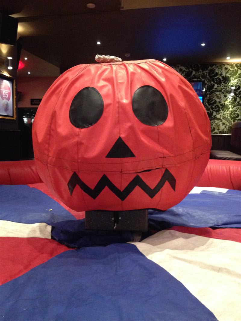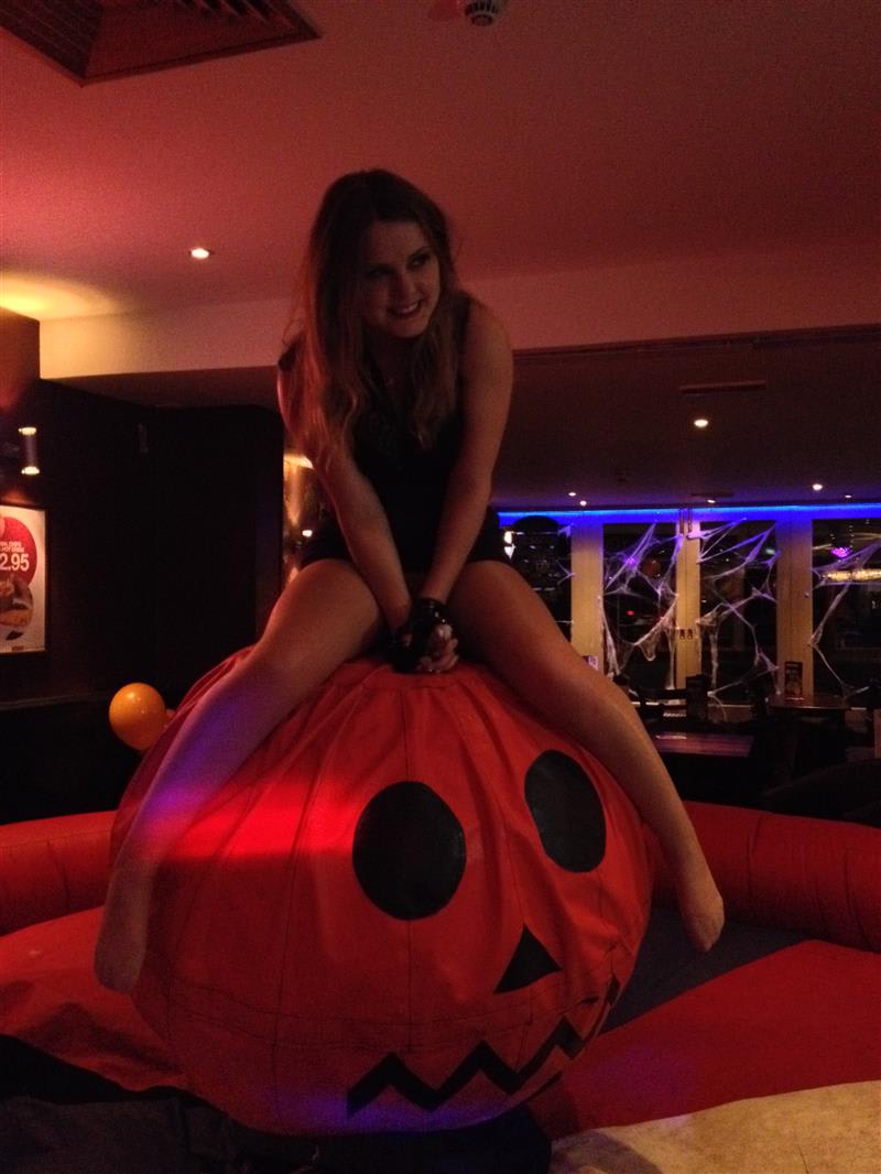 A Pumpkin attachment for the Rodeo Bull. Ghoulishly difficult! Hang on as this haunted pumpkin has some fun with you & your guests! Please Note: This is an optional appearance upgrade. This can ONLY be hired alongside the Rodeo Bull as an EXTRA!
