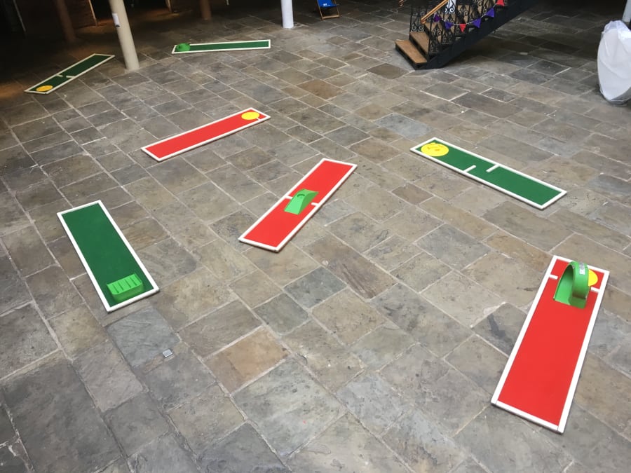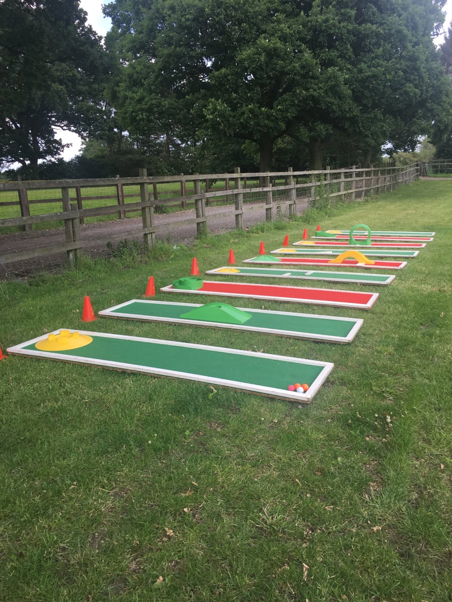Crazy golf is particularly popular at Weddings, Birthday Parties and School Fates. A really fun choice for all ages, equipped with standard and junior golf clubs to suit any height! Supporting a maximum of 9 users at a time, we provide the clubs and balls with a scorecard for each player, so everyone can get a go! Please note: Each Hole is on a separate board, we can set up all 9 boards or fewer, if you are lacking on space! Upon booking, please request fewer boards for your desired Product/Service in the notes section and a member of the team will be in contact to confirm your requirements! Please visit our FAQs or Contact Us for more information! A flat Surface is required for the effective use of Crazy Golf!