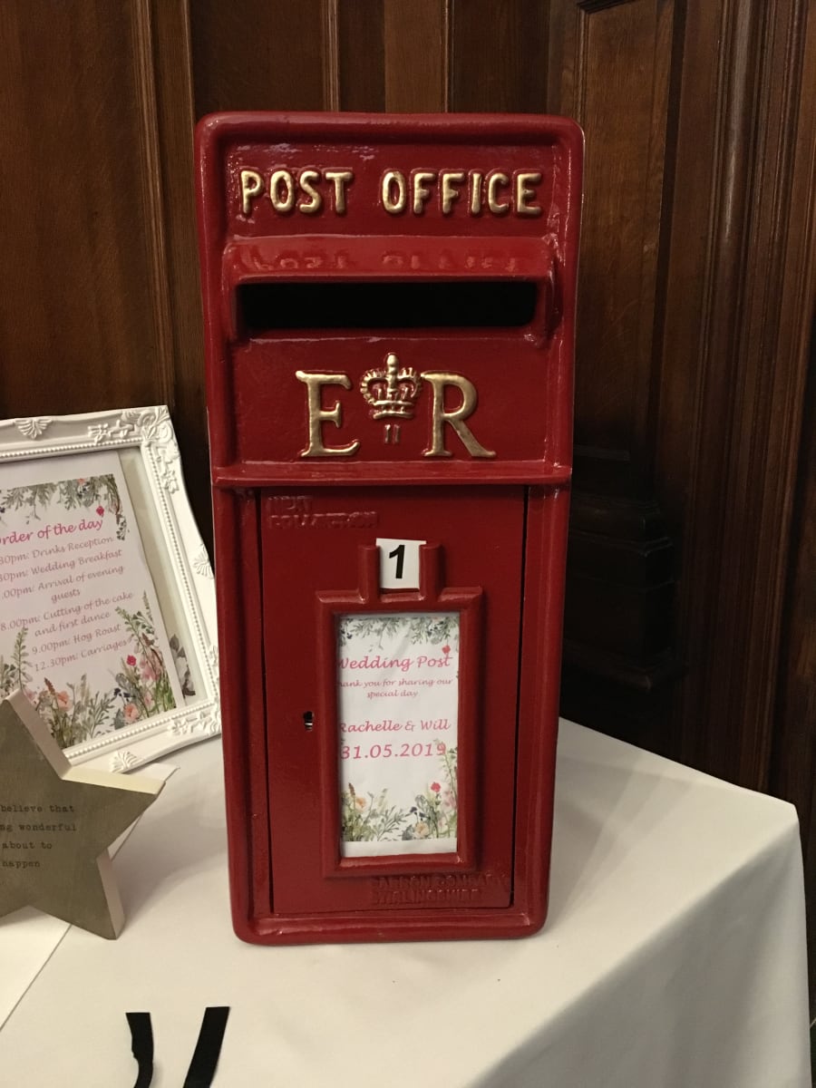 A beautiful and practical addition to any event receiving cards, in particular, weddings! This vintage post box provides an elegant solution to a collection of cards, one may potentially expect at an event. Equipped with a lock to ensure your cards, gifts & valuables stay in one safe place, and the place-card at the front can be customised to the VIPS name's & important dates! Price Includes overnight hire. So you can enjoy your event without worry or concern!