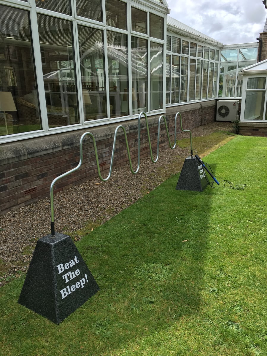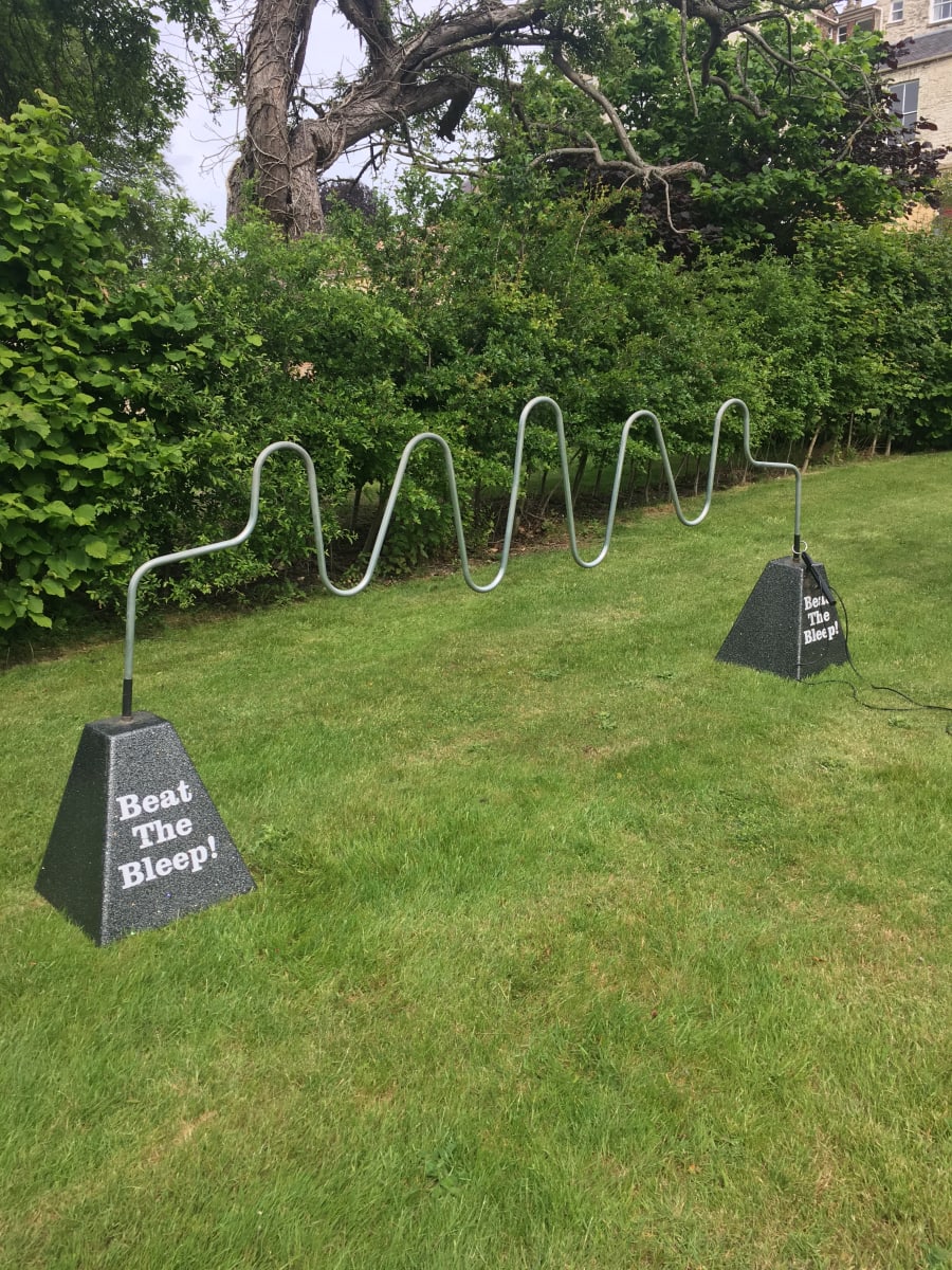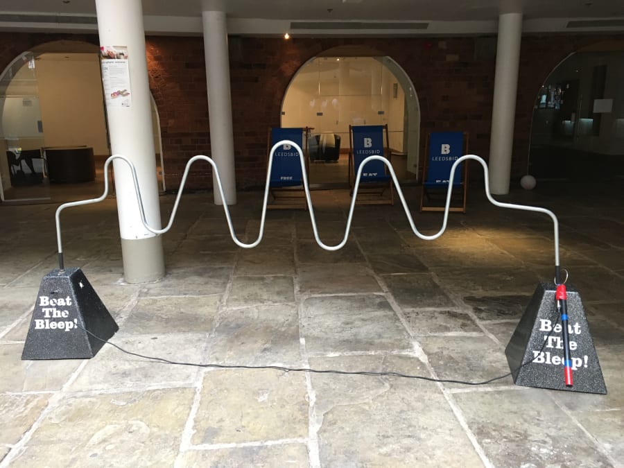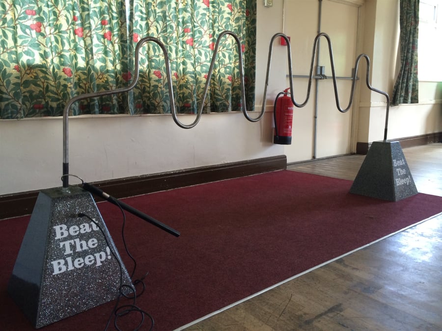 This is an amazingly popular version of the fun fair classic, buzz wire... But bigger! The objective is to move the wand attached via a metal ring, from one end to the other. Without touching the metal bar! Sounds easy right? Give it a go and take our word for it... Its MUCH harder than it looks!! Great fun and weirdly competitive! Equipped with 9v Battery Operated Batons, this game doesn't require a power outlet! Whether its indoors or out, this game is suitable for any event, any crowd, any time of the year! Consider this great idea for entertainment with our other fantastically unique Giant Games!