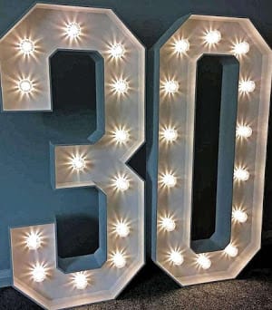 Keep up with the trend with our #30 Numbers! Celebrate in style and display your age proud! Using LED bulbs & regular PAT testing, you will benefit from safe, highly efficient, low-power consumption. Whilst providing a powerful yet soft white light, which will brighten up the corner of a room with great effect.
