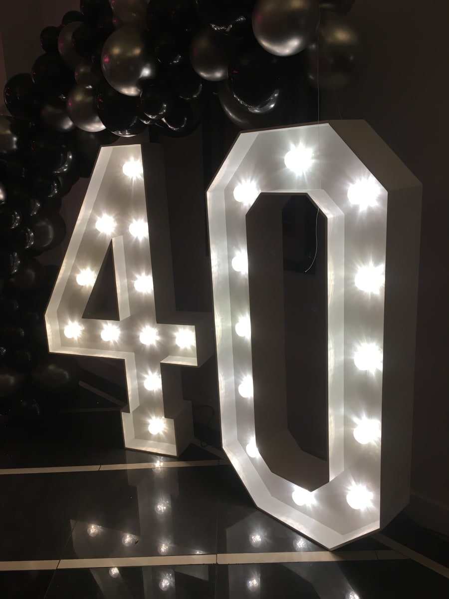 Determined to have a party to stave off mid-life crisis? Don't fold into buying a motorbike! Instead, keep the party animal alive with our #40 Numbers! Using LED bulbs & regular PAT testing, you will benefit from safe, highly efficient, low-power consumption. Whilst providing a powerful yet soft white light, which will brighten up the corner of a room with great effect. These professionally made numbers look fantastic, provide great room decor and are a brilliant photo prop to complement your event space!