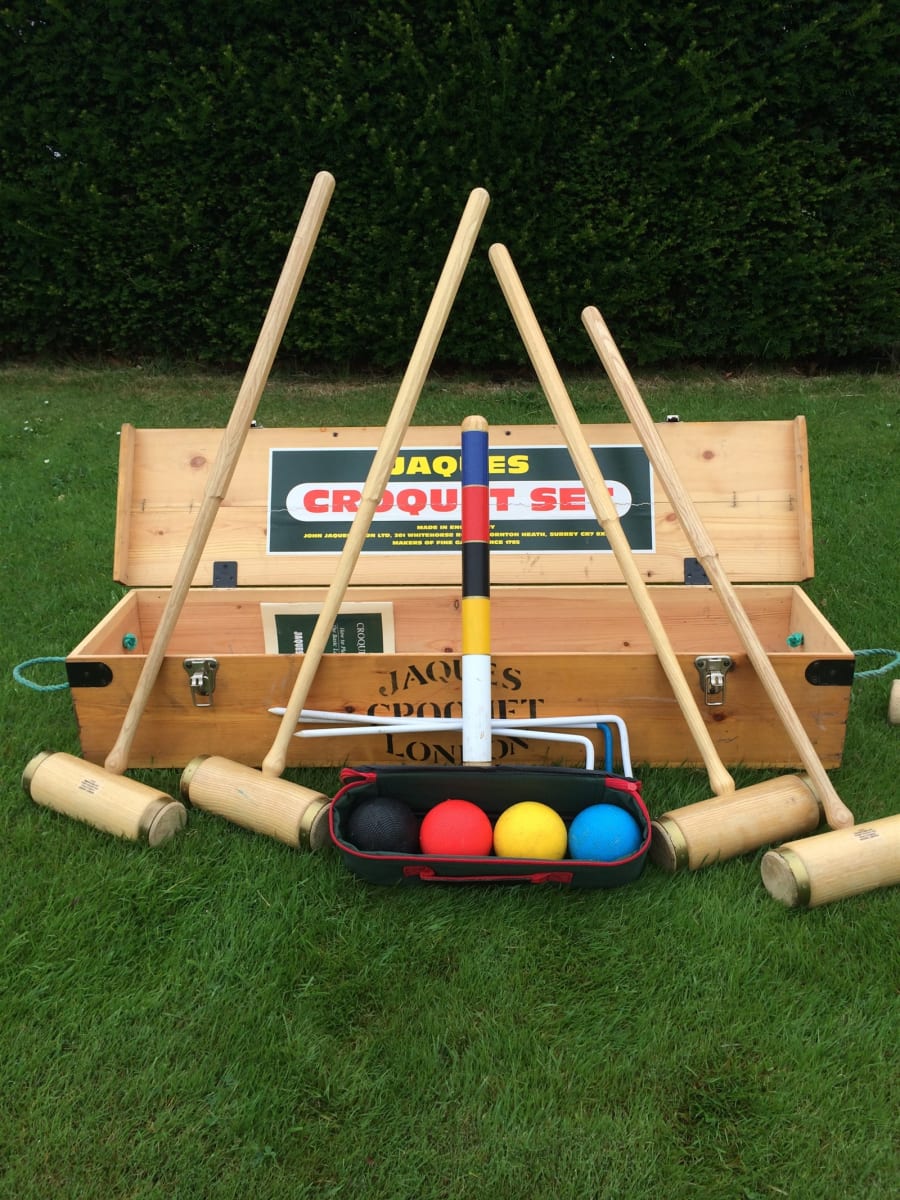 This is a Beautiful, Bespoke, High Quality Oxford Croquet Set manufactured by Jaques of London. This set contains everything you need for a Traditional Game or Regulation. A classy item or a fun one, suitable for all ages. Weddings and Birthday Parties are a good choice for the fun factor of the game. Or a fancy game, accompanied by a string quartet at prestigious events! (It's a thing!) Please Note: We can only setup on grass or soft ground.