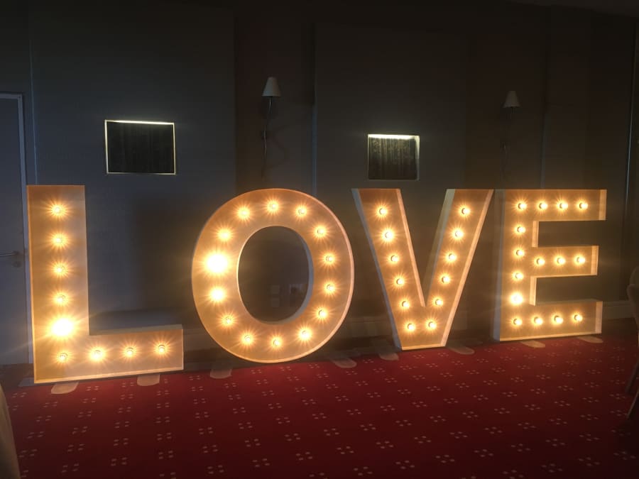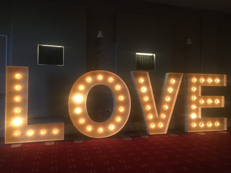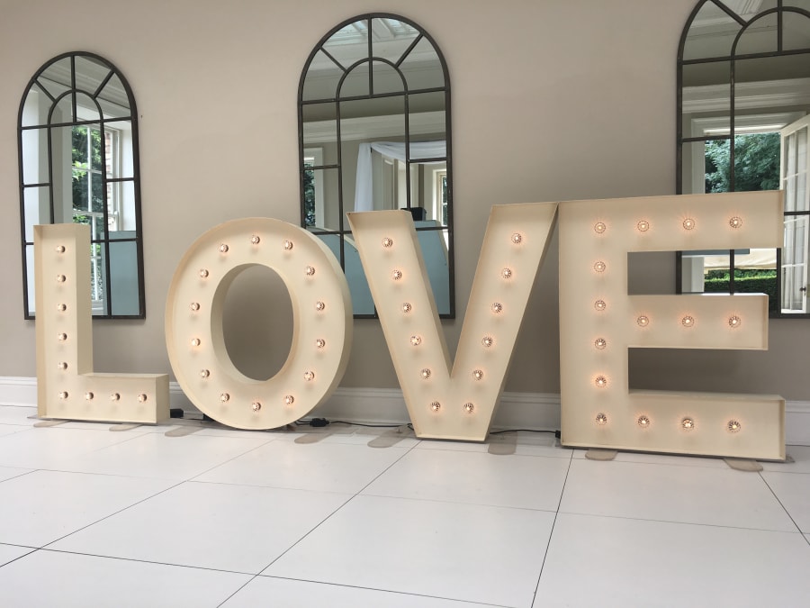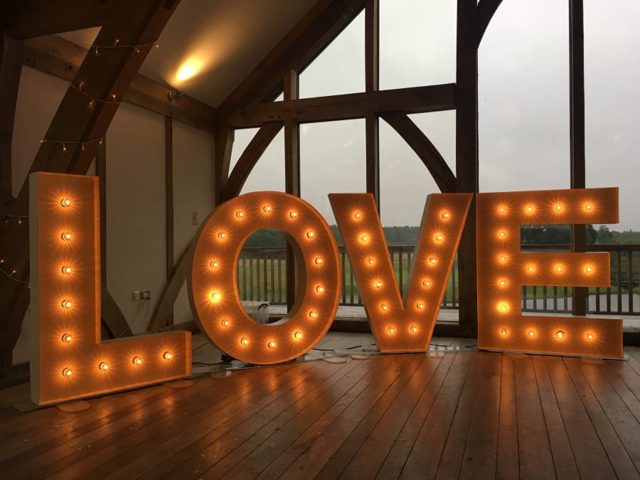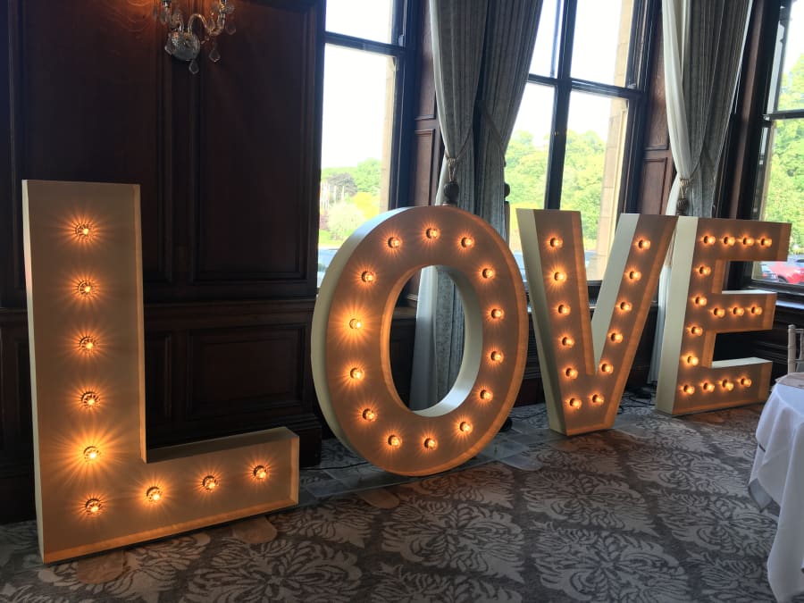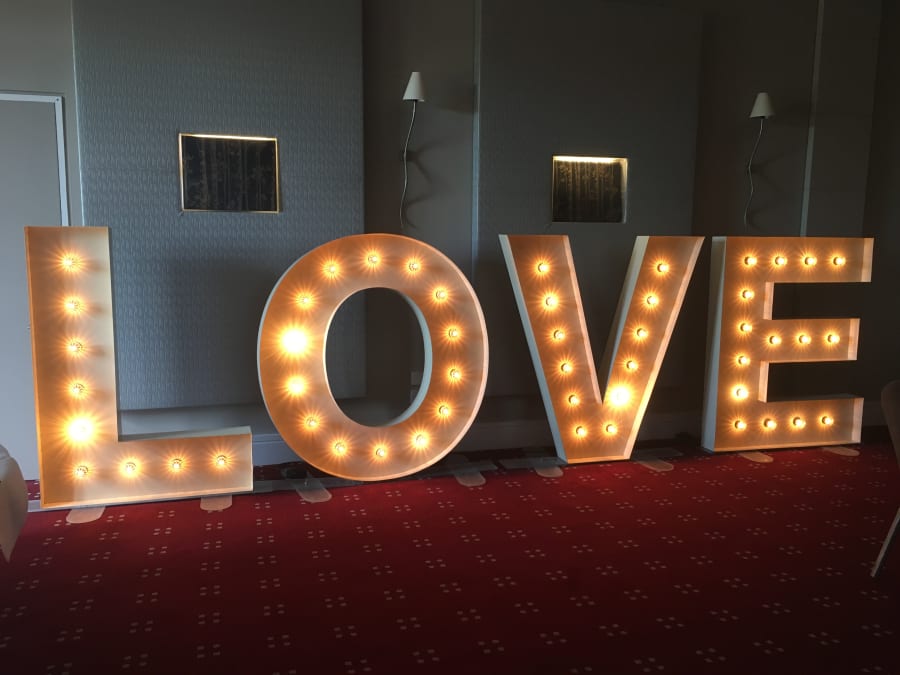 A beautiful, bespoke set of Vintage style LOVE letters. For when you want to make a BIG statement! These stylish, 5ft vintage letters feature fairground style lamps to give a realistic vintage effect. These LOVE letters look absolutely fantastic and add an extra touch of class to your wedding. An awesome prop in wedding photos!