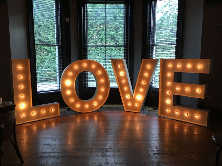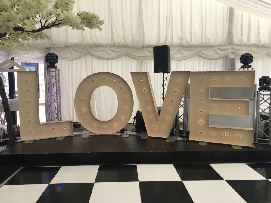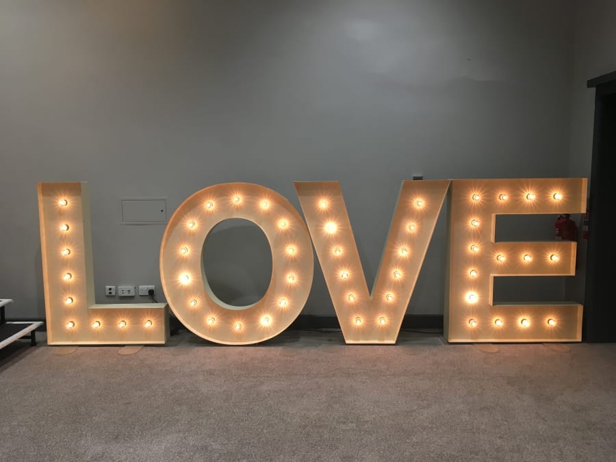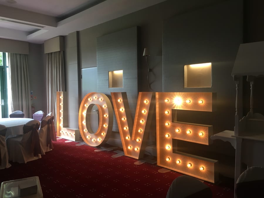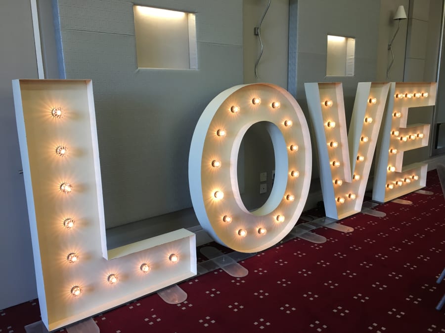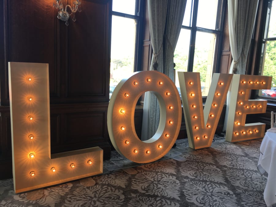 A beautiful, bespoke set of Vintage style LOVE letters. For when you want to make a BIG statement! These stylish, 5ft vintage letters feature fairground style lamps to give a realistic vintage effect. These LOVE letters look absolutely fantastic and add an extra touch of class to your wedding. An awesome prop in wedding photos!